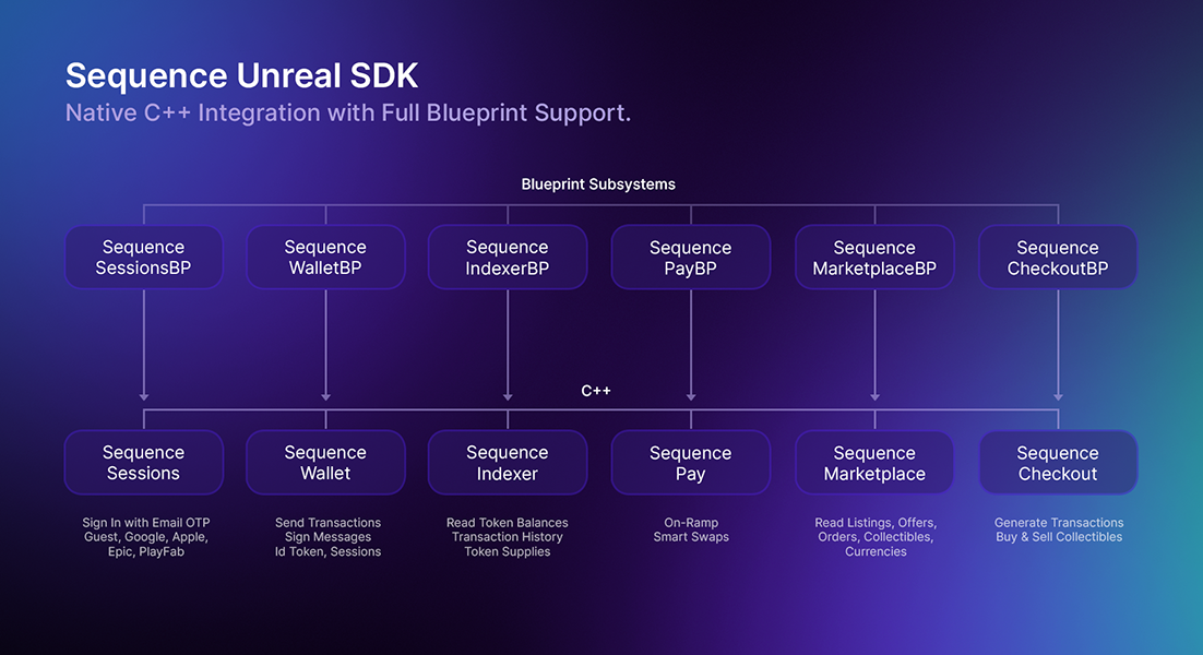 Are you using V1 of our Unreal SDK? Checkout the relevant docs here. The Sequence Unreal Embedded Wallet SDK provides full Sequence Embedded Wallet, Indexer, integration for games built on the Unreal Framework.Architecture